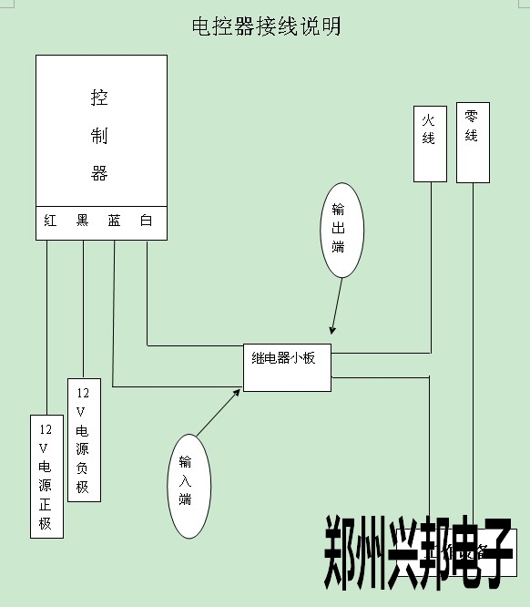 1、繼電器小板接線柱標有12V+的的一端是輸入端  分別接控制器的藍線和白線