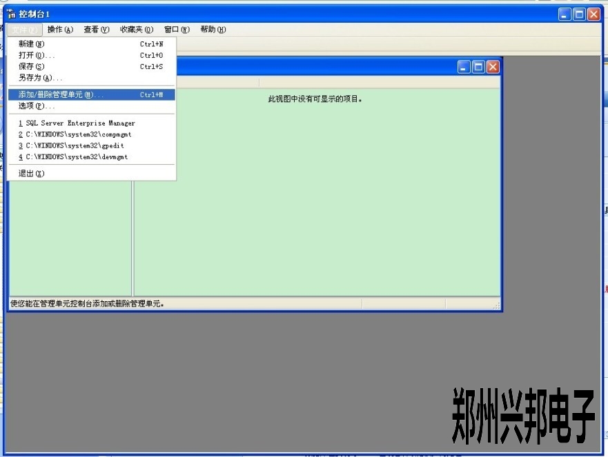 1. 首先把2005數據庫安裝退出,然后點開始--運行,輸入mmc按回車,然后進入控制臺,點文件--添加刪除管理單元,如下圖所示
