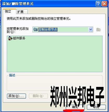 把光標點一下組件服務,點添加,然后關閉,如下圖