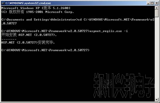 2. 然后在命令行中輸入aspnet_regiis.exe -i ,按下Enter,如下圖所示安裝ASP .NET;