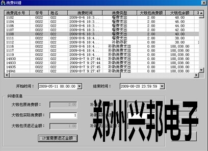 Ø 單擊【讀卡】,在記錄表中單擊選擇消費錯誤的那條記錄,輸入應(yīng)該消費扣除的實際大錢包及補助金額,