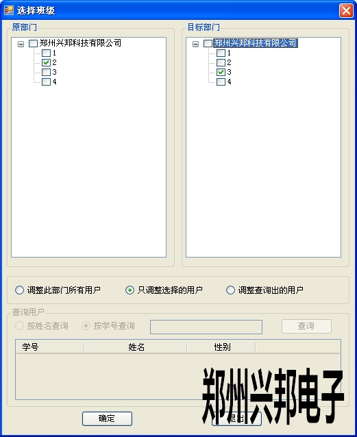 2、也可以通過調(diào)整部門來改變卡信息里的部門。調(diào)整人員的部門,可選擇調(diào)整部門所有用戶、只調(diào)選擇的用戶或者調(diào)整查詢出的用戶。