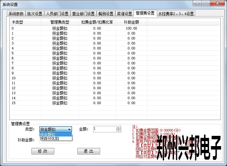 如上圖所示,可以根據卡類型設置不同的優惠比例,比例的范圍是1-200%,如果是打九折,百分比設置為90%就可以了,如果是打八折,百分比設置為80%就可以了。