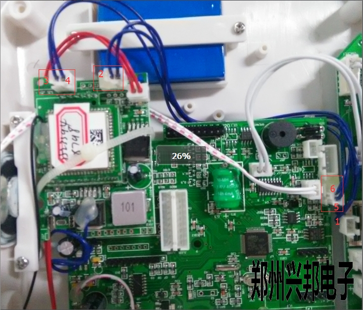 安裝好后,注意走線,通訊線如圖3-1中所示,下壓到板子下面。電源線從GPRS模塊下方穿過。