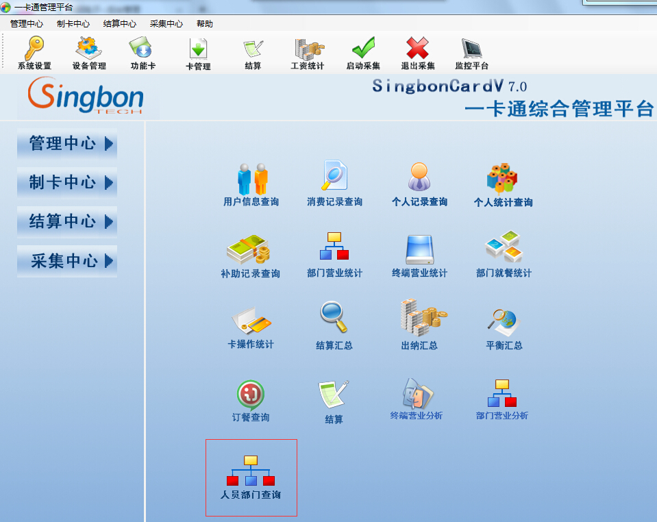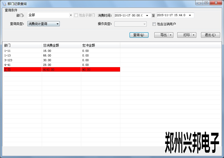 前提是要規劃好人員部門,對人員部門進行分類。查詢類型有三種:消費統計查詢,消費明細查詢,記錄明細查詢。
