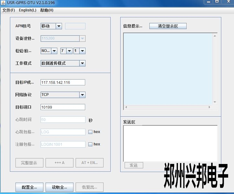 息,設置參數要與 GPRS 串口連接的串口設備的串口參數一致。這里我們使用115200波特率