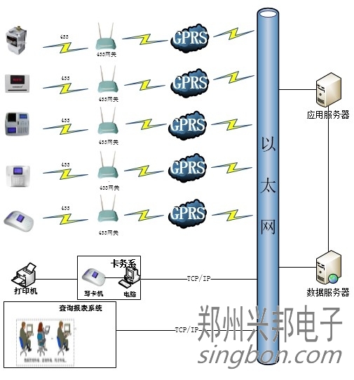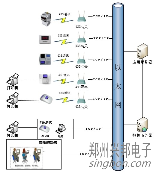 [文章內容簡介]:BS平臺IC卡中文液晶顯示消費機433通訊網絡拓撲圖。
