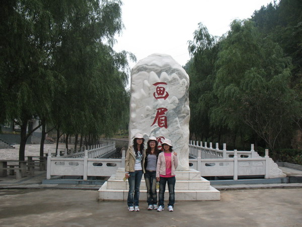 客服部的三位美女在畫眉谷大門口合影。