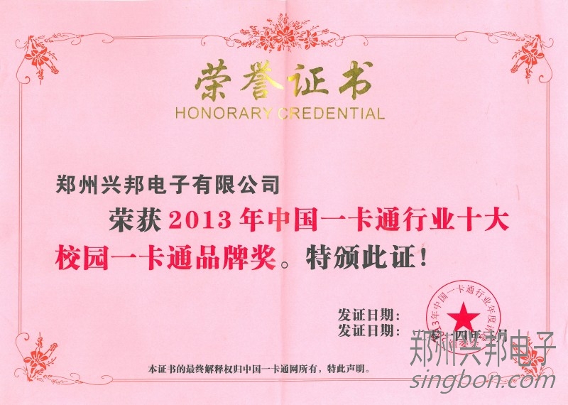 興邦電子榮獲十大校園一卡通品牌