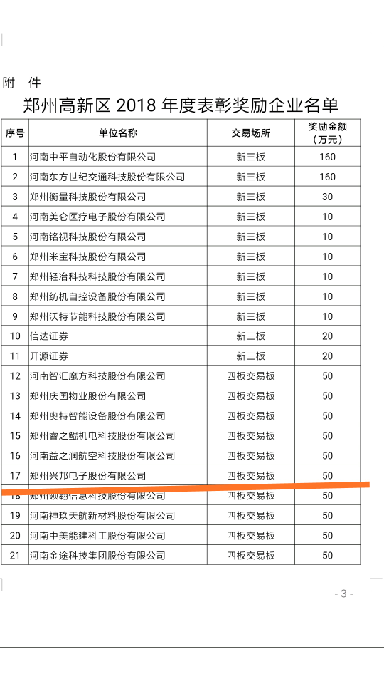 [文章內容簡介]:轉發:鄭州高新技術產業開發區管委會關于表彰鄭州高新區2018年度多層次資本市場企業的決定